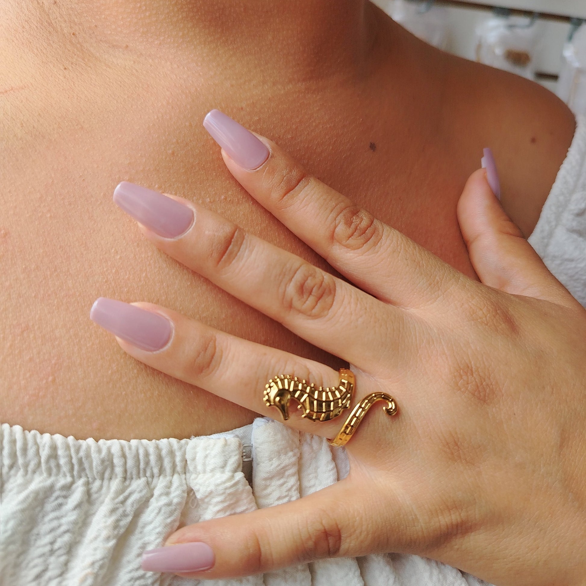Este anillo, inspirado en la delicadeza del caballito de mar, es perfecto para personas tranquilas, intuitivas y empáticas, que buscan equilibrio y armonía en su vida. Con su diseño elegante y conexión con la naturaleza, simboliza la serenidad y la capacidad de adaptarse con gracia a cualquier situación.