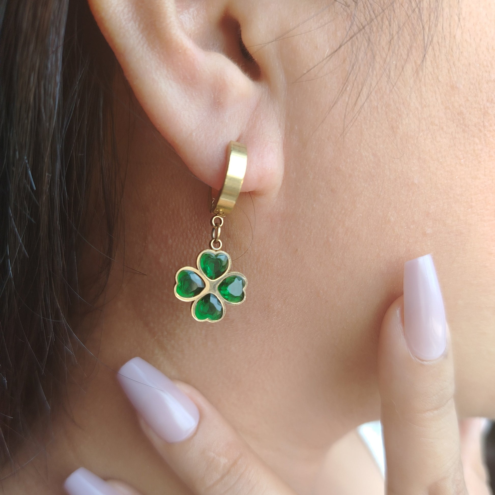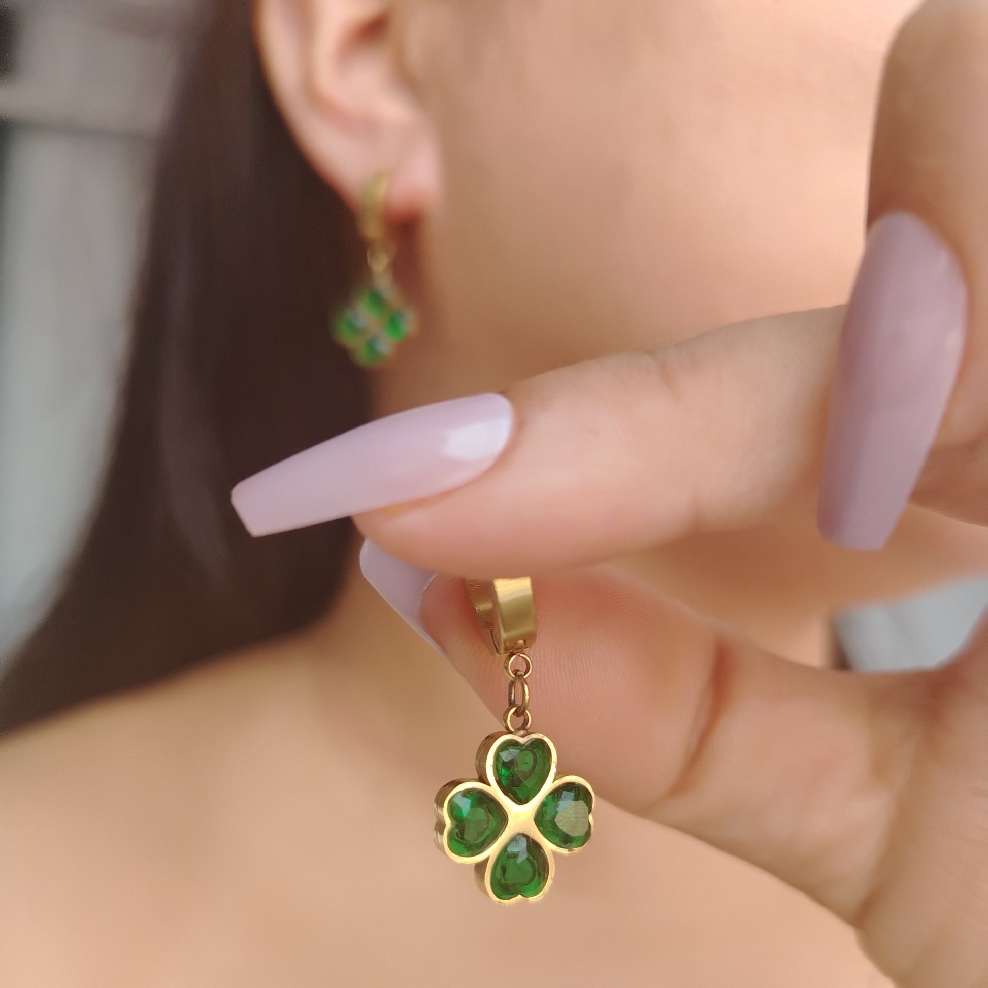 Estos aretes simbolizan la buena fortuna y la belleza de la naturaleza. Inspirados en la delicadeza de una flor y la suerte del trébol de cuatro hojas, están diseñados para atraer energía positiva y armonía. Ideal para quienes buscan llevar consigo un amuleto de prosperidad, recordando que la suerte siempre está de su lado. Su tono verde intenso evoca frescura y esperanza, complementando cualquier estilo con un toque de naturaleza y elegancia.
