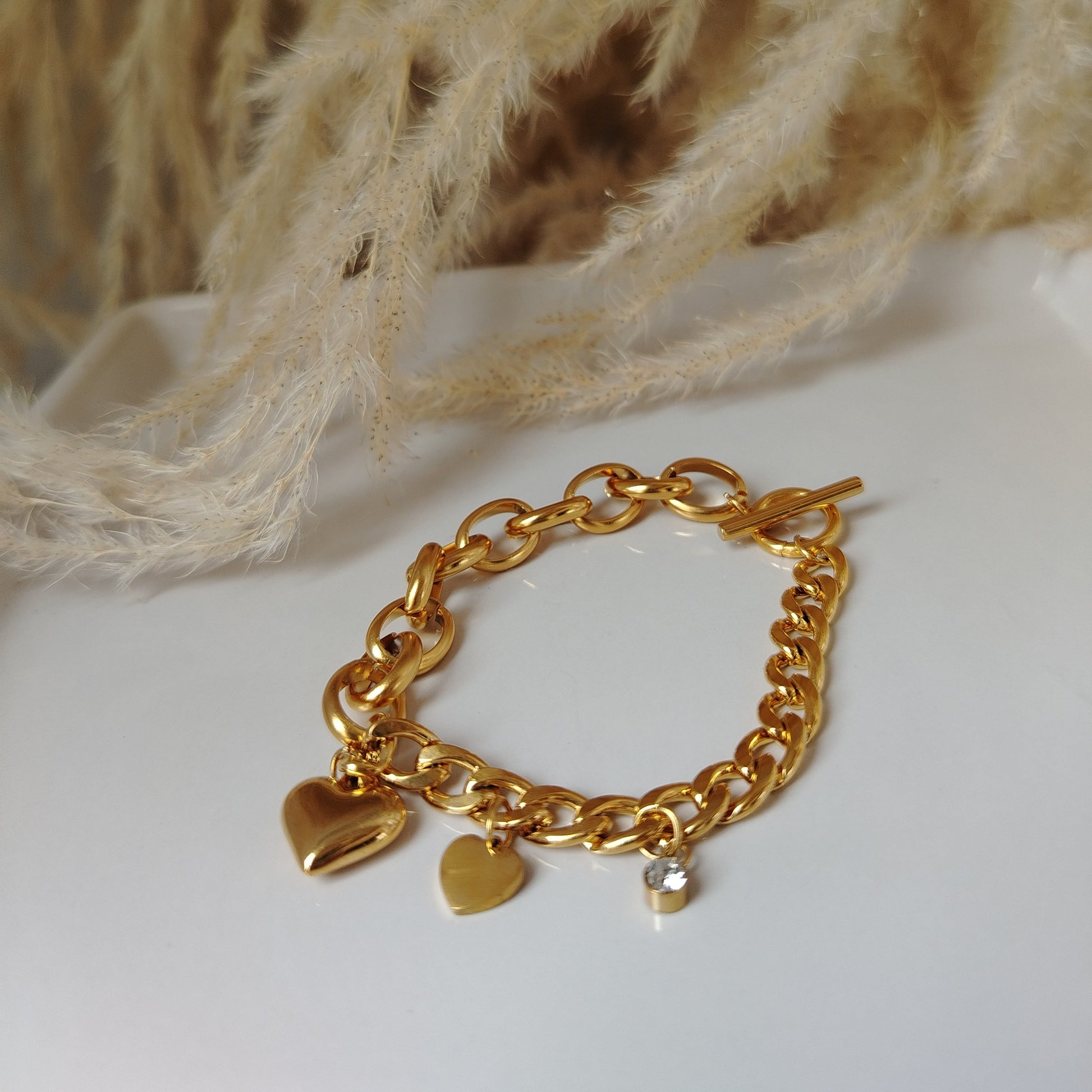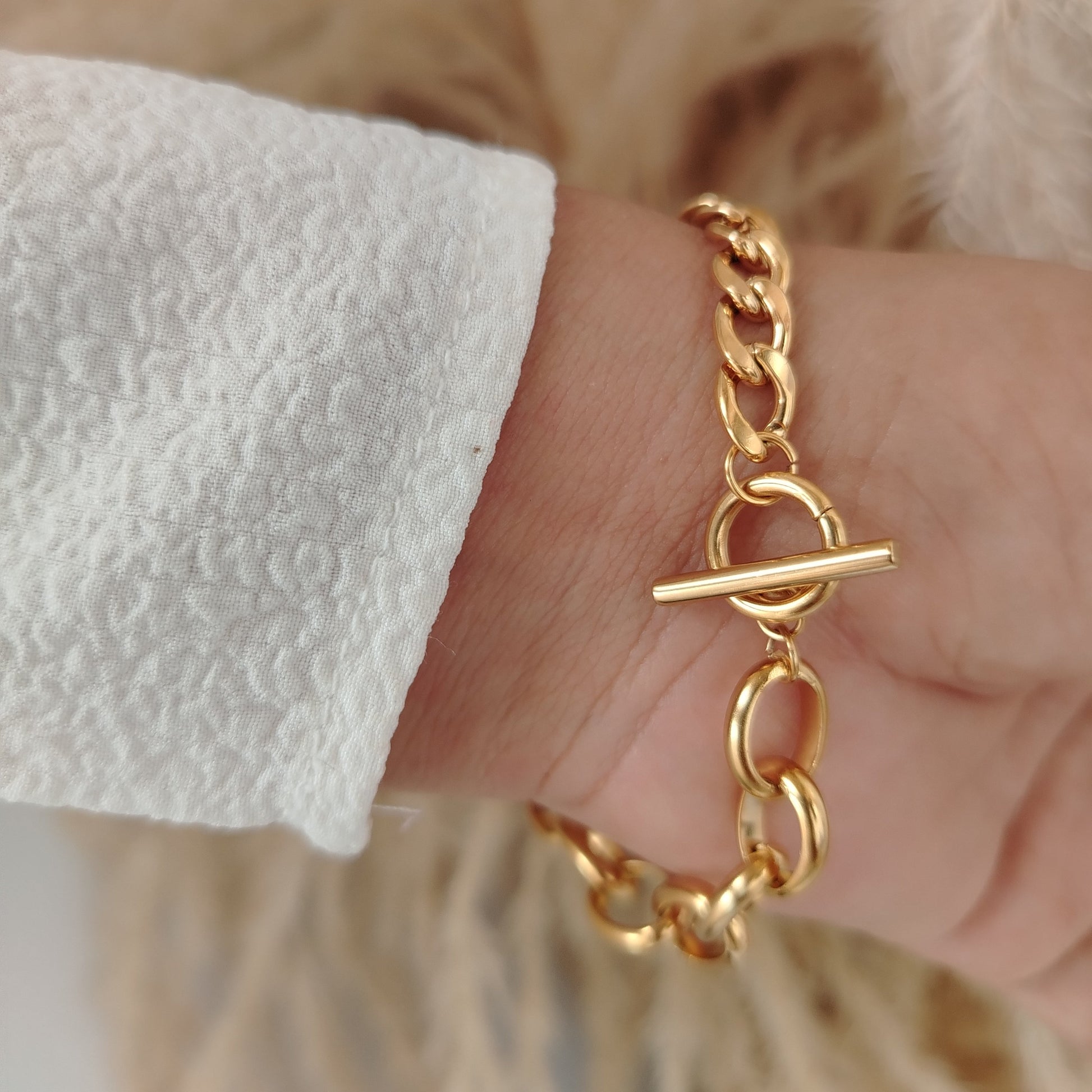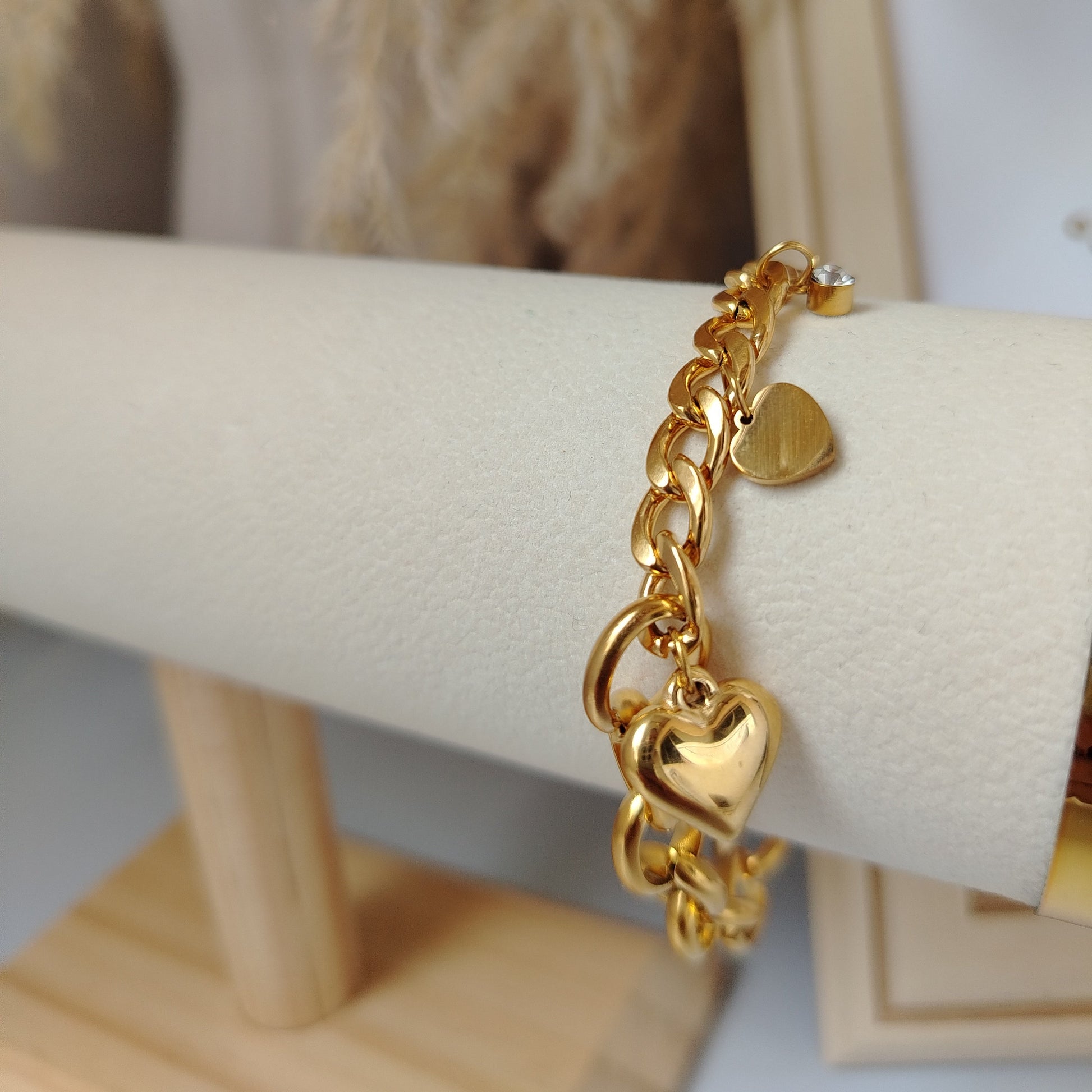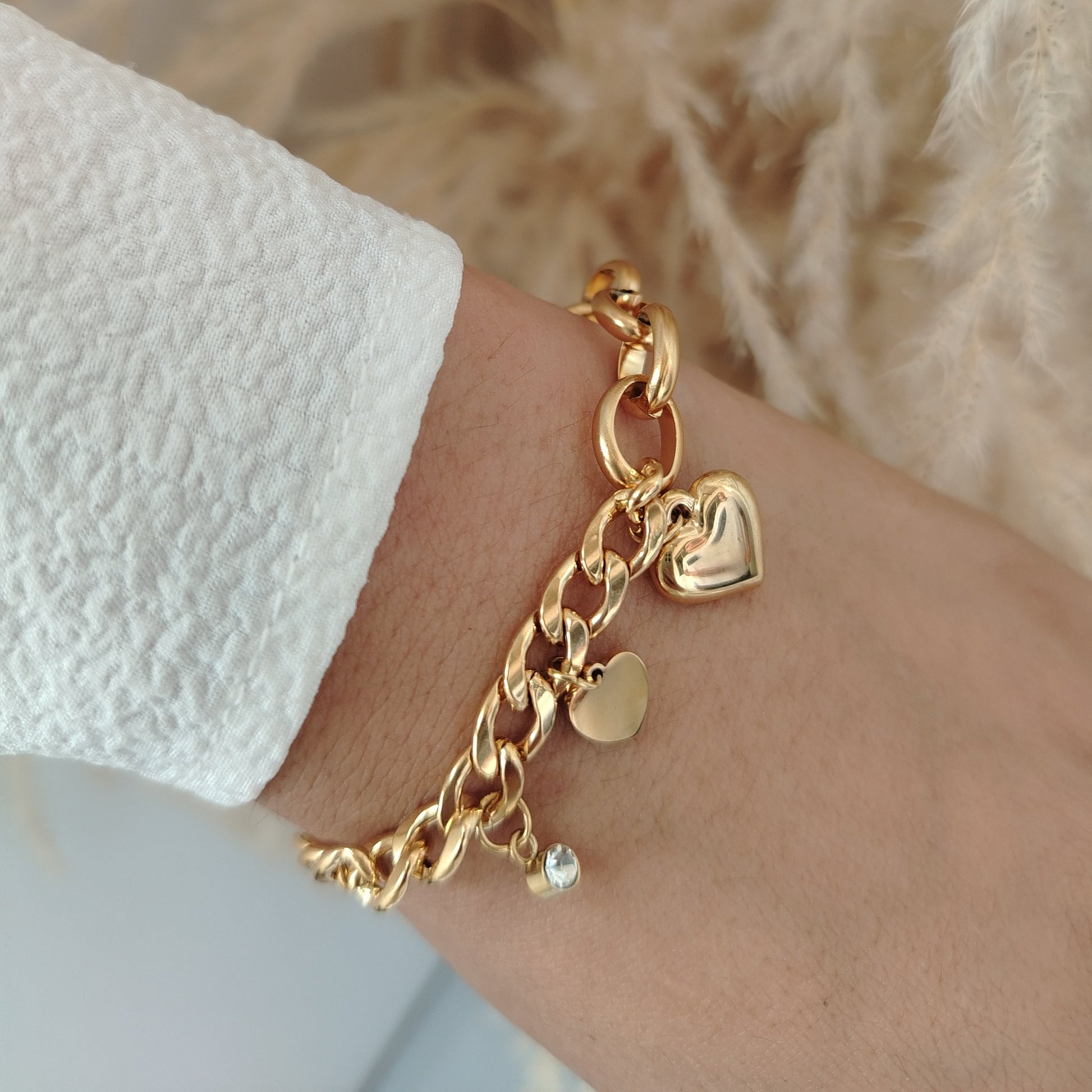 FORTIA simboliza la fuerza que nace desde lo más sutil. Esta pulsera de acero inoxidable chapado en oro de 18KL refleja elegancia y carácter, perfecta para mujeres que inspiran con su energía suave pero firme.
