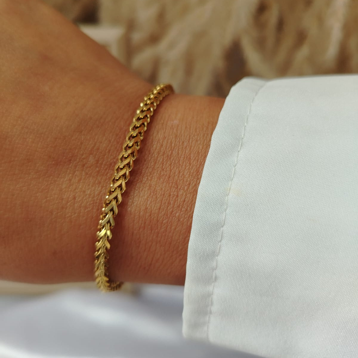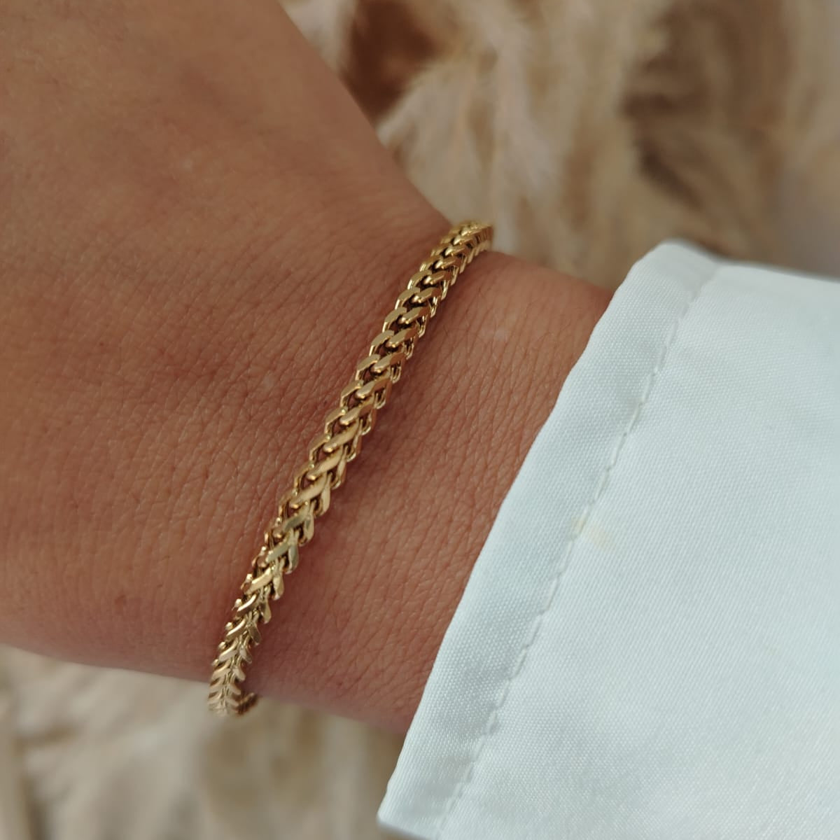 Una pulsera de diseño trenzado que simboliza unión, resistencia y estilo. Su acabado dorado combina elegancia con carácter, ideal para personalidades firmes, auténticas y que valoran los vínculos que las hacen más fuertes.